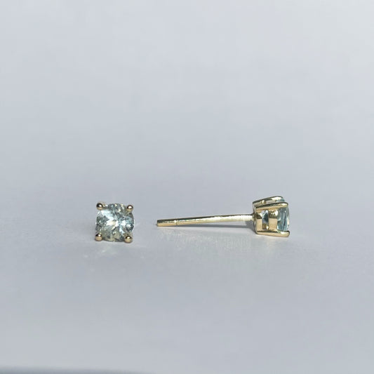14K Solid Gold 5mm Genuine Aquamarine Studs/Pair