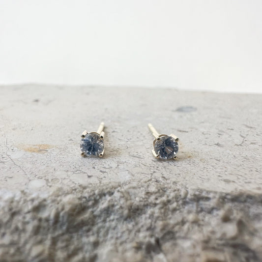 14K Solid Gold Natural 3mm Light Ceylon Sapphire Studs
