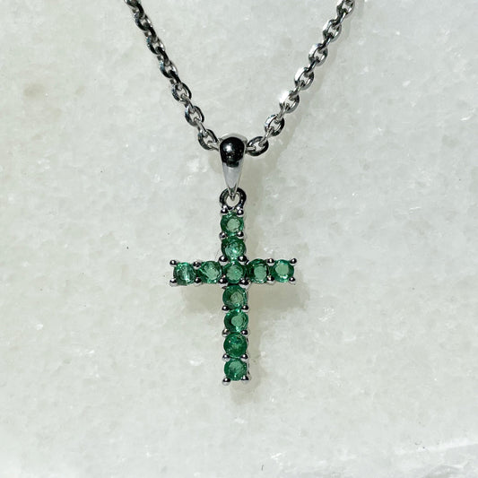 14K Solid Gold Genuine Emerald Cross Pendant (pendant only)