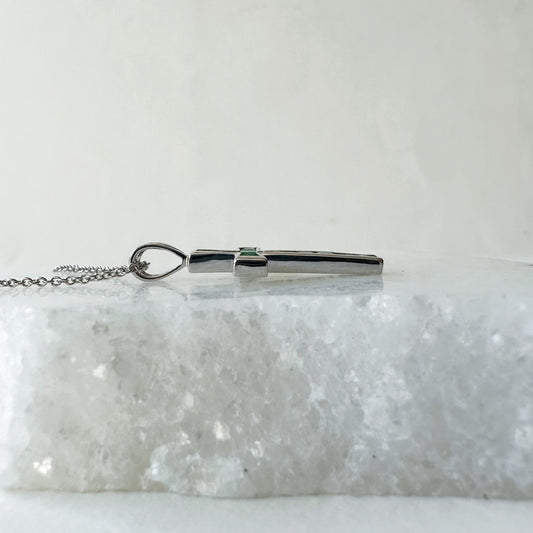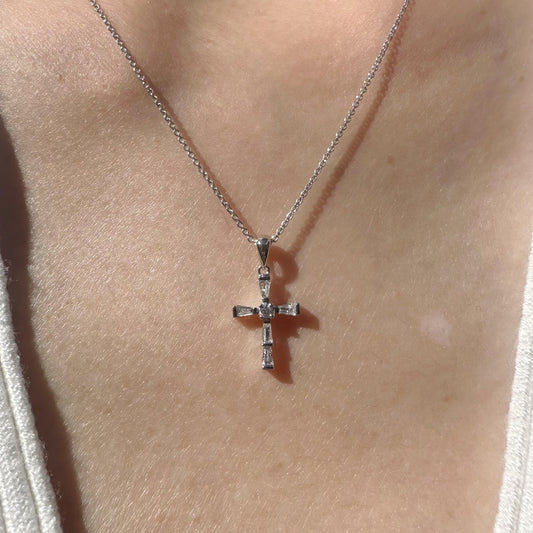 14K Solid White Gold Genuine Baguette Diamond Cross Pendant