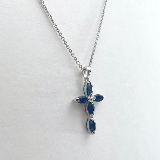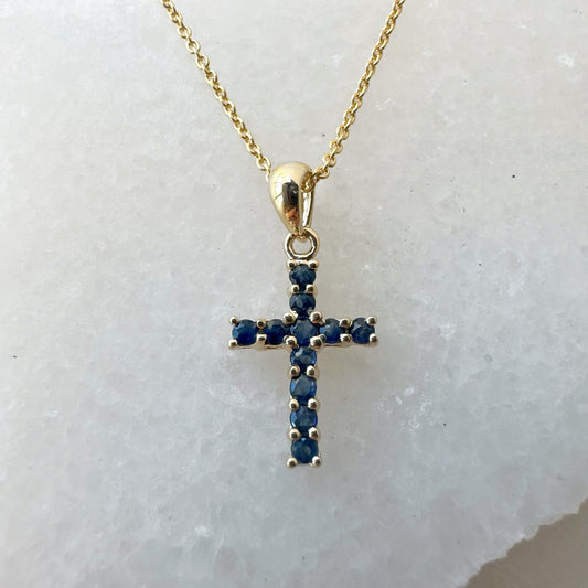 14K Solid Gold Genuine Sapphire Cross Pendant (pendant only)
