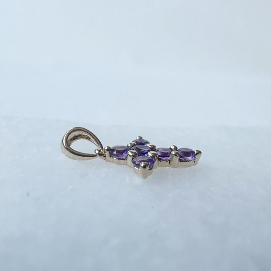 14K Solid Gold Genuine Amethyst Small Cross Pendant (pendant only)