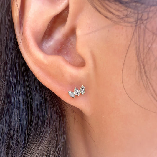 14K Solid Gold Genuine Diamond Trio Studs/Pair