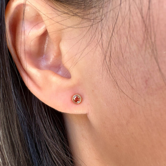 14K Solid Gold Genuine Round Orange Sapphire Bezel Studs/Pair