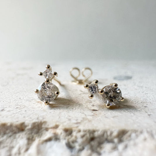 14K Solid Gold Sapphire and Diamond Chevron Studs