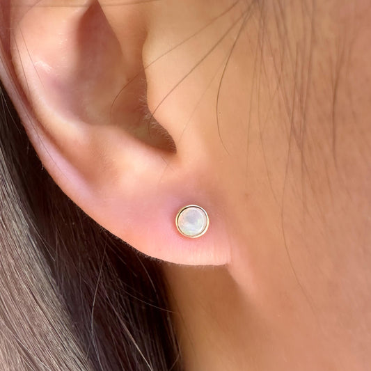 14K Solid Gold Genuine Bezel Opal Round Studs/Pair