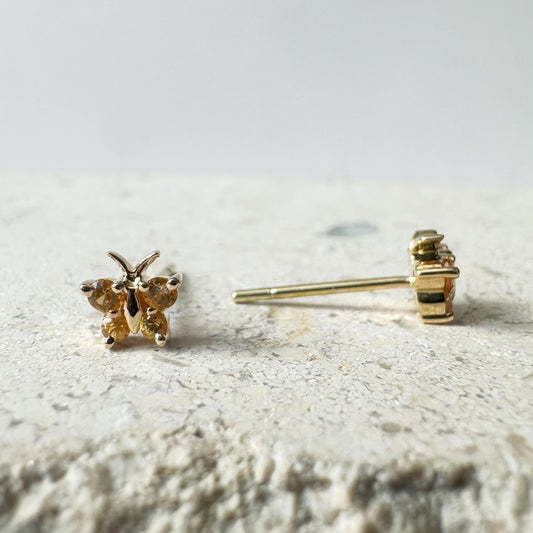 14K Solid Gold Genuine Orange Sapphire Butterfly Studs/Pair