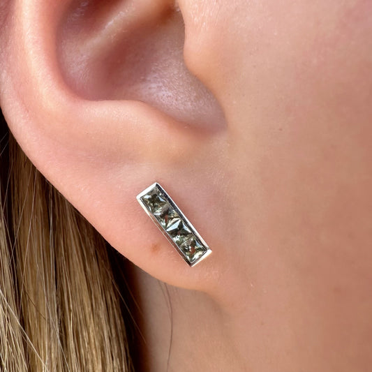 14K Solid Gold Genuine Green Sapphire Bezel Bar Studs/Pair