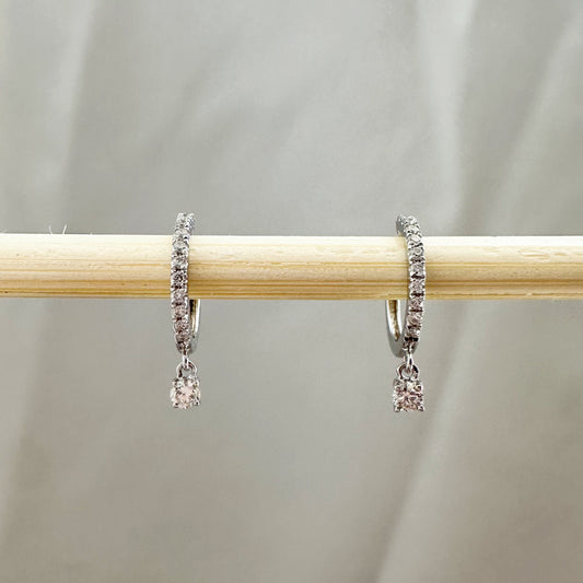 14K Solid Gold Genuine Diamond Dangle Hoops/Huggies (Pair)