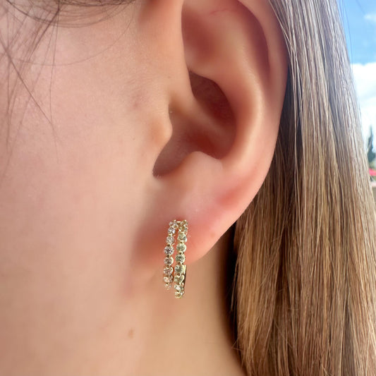 14K Solid Gold Genuine Green Sapphire and Diamond Double Hoops/Pair