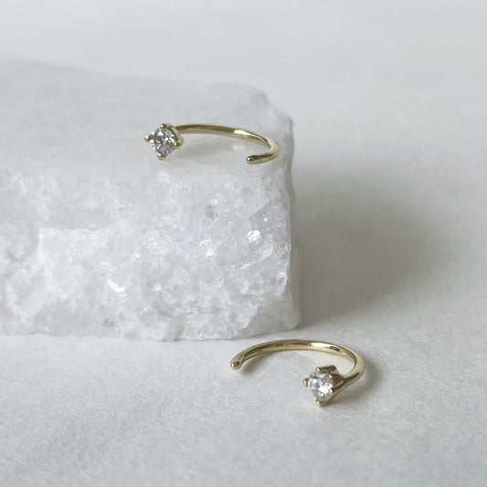 14K Solid Gold Genuine Reverse Diamond Huggies/Pair