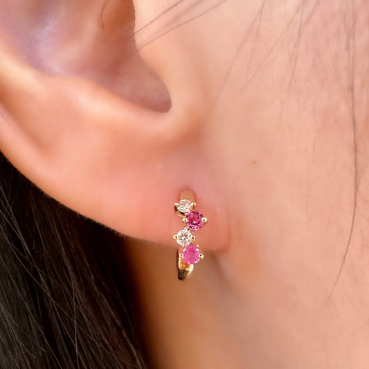 14K Solid Gold Ruby Huggie Earrings/Pair