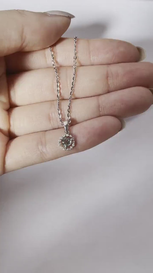18K Solid White Gold Green Sapphire Diamond Pendant (Pendant Only)