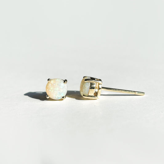 14K Solid Gold Genuine 3mm Round Opal Studs