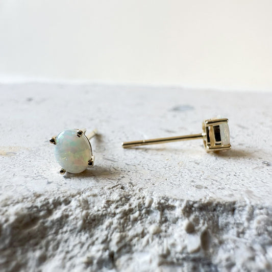 14K Solid Gold Genuine 4mm x 5mm Oval Opal Studs/Pair