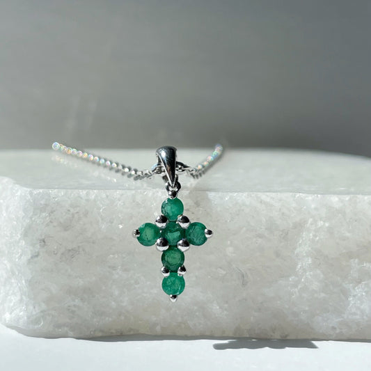 14K Solid Gold Genuine Small Emerald Cross Pendant (pendant only)