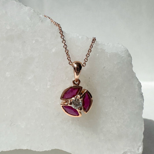 14K Solid Rose Gold Genuine Diamond and Ruby Circle Pendant