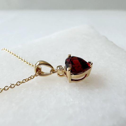 14K Solid Gold Heart Shaped Genuine Garnet and Diamond Pendant