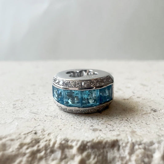 18K Solid White Gold Genuine Blue Topaz and Diamond Barrel Pendant