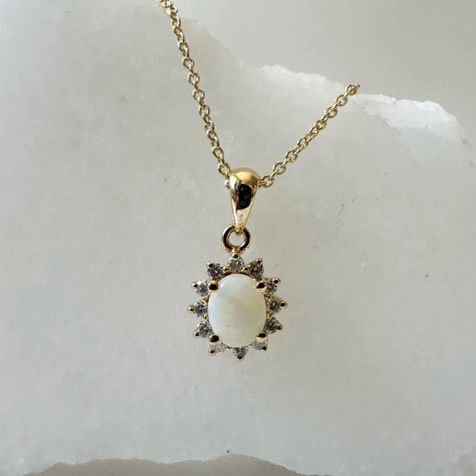 14K Solid Gold Genuine Opal and Diamond Pendant