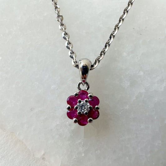 14K Solid Gold Genuine Ruby and Diamond Flower Pendant (pendant only)