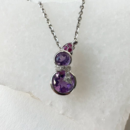 14K Solid Gold Genuine Amethyst Diamond and Ruby Pendant