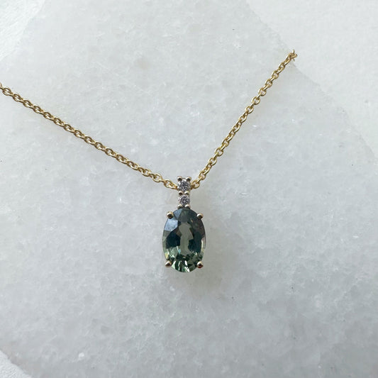 18K Solid Gold Diamond and Oval Green Sapphire Pendant (Pendant only)