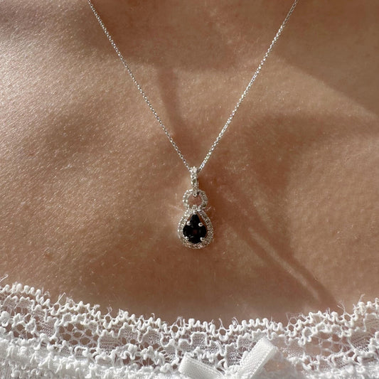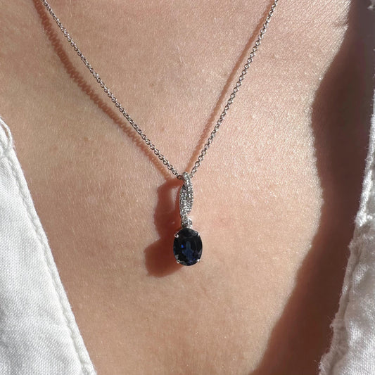 14K Solid White Gold Genuine 1 Carat Sapphire and Diamond Pendant