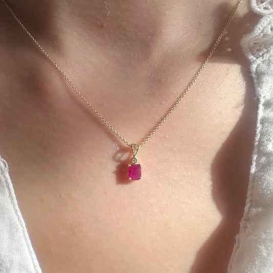 14K Solid Gold Genuine Diamond and Ruby Pendant