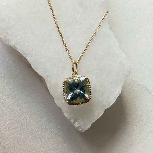 14K Solid Gold Genuine Cushion Cut 1.91 Carat Aquamarine Square Pendant