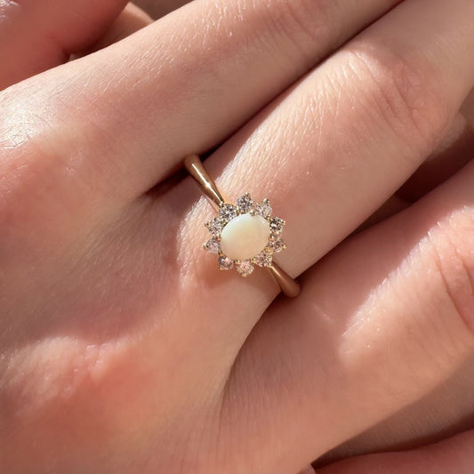 14K Solid Gold Opal and Diamond Halo Ring