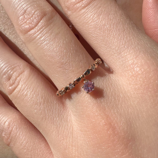 14K Solid Gold Genuine Pink Sapphire and Diamond Dangle Ring