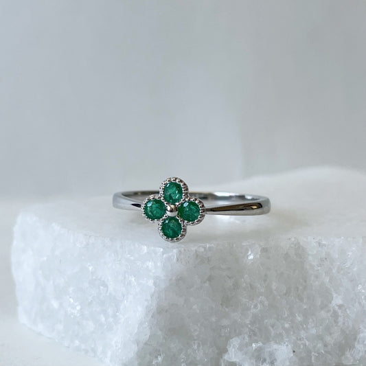 14K Solid Gold Genuine Emerald Clover Ring