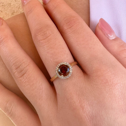 14K Solid Gold Genuine Garnet and Diamond Ring/Engagement Ring/Promise Ring