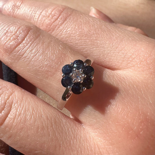 14K Solid Gold Genuine Sapphire and Diamond Flower Ring