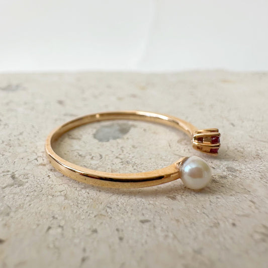18K Solid Rose Gold Genuine Ruby and Pearl Ring