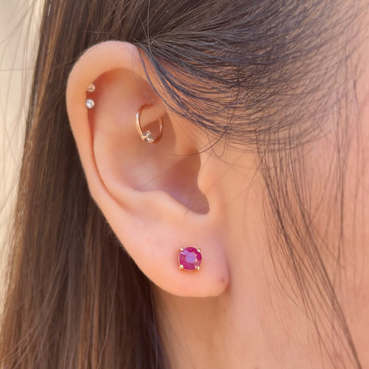 14K Solid Gold Genuine Ruby and Diamond Curve Studs/Pair