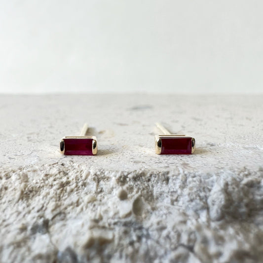 14K Solid Gold Genuine Baguette Ruby Studs/Pair