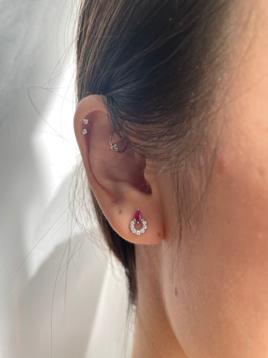 14K Solid Gold Diamond and Ruby Halo Studs