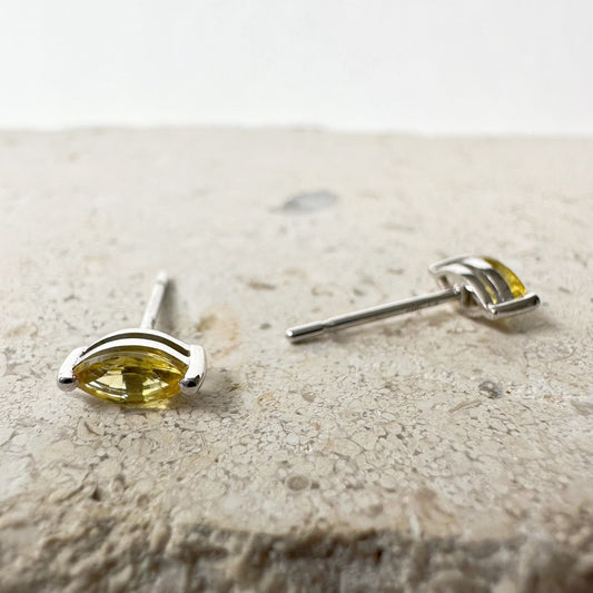 14K Solid Gold Genuine Marquise Yellow Sapphire Studs/Pair