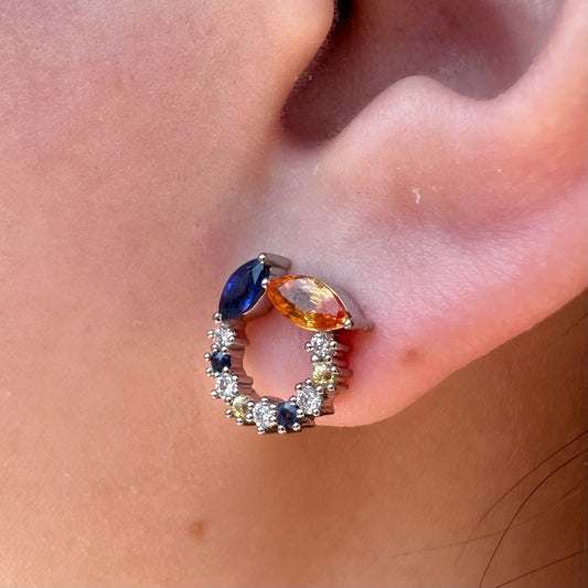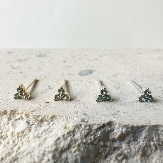 14K Solid Gold Pink/Green/Orange/Yellow Color Sapphire Trio Studs/Pair